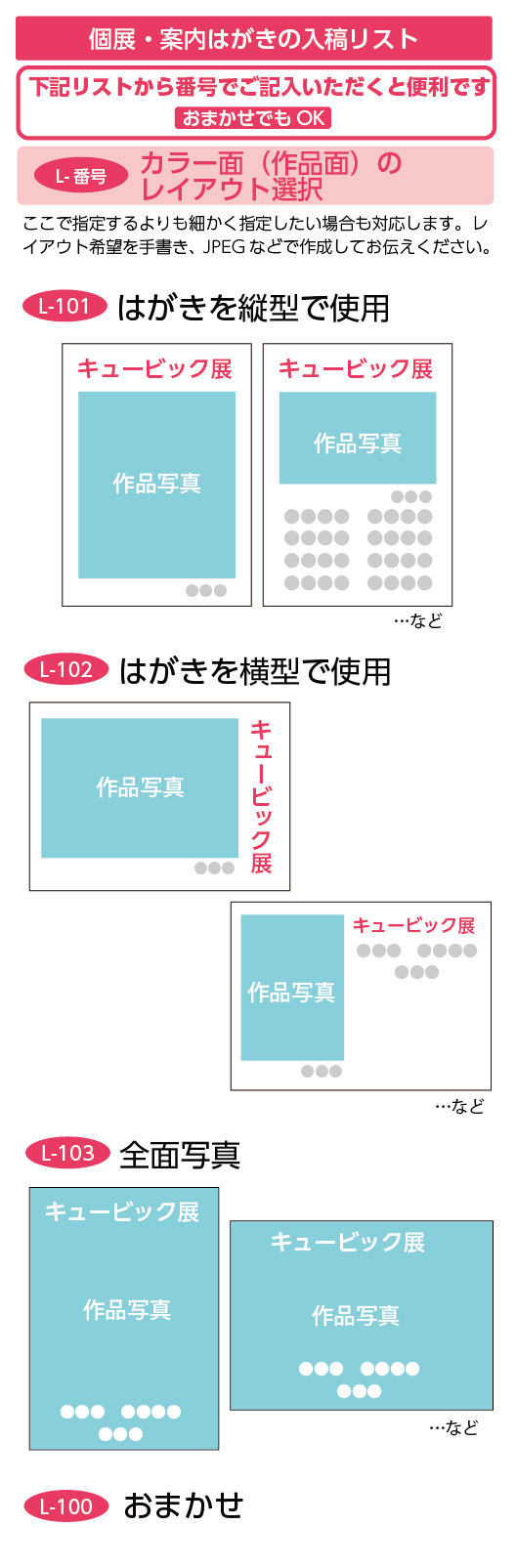 案内葉書のカラー面(写真面)は、縦型、横型、全面写真かをまずは選択していただきま。この選択されたものを基盤に、当ショップでデザイン・レイアウトを作り上げます。おまかせをご指定でしたら、デザイナーが最適と思われるデザインを提案いたします。また、細部にわたりご指示いただければ、ご指定通り形にすべく版データを作ります。どちらのご指示でも、作った版データは、お客様がご覧いただけるデータ形式にして、校正提出いたします。印刷前にご確認いただけますので安心です。修正をご指示頂けましたら、修正を施しまして再度ご提出いたします。オーケー(校了)を頂けましたら翌営業日より印刷工程に進行させていただきます。