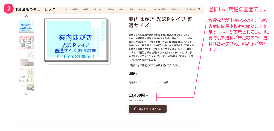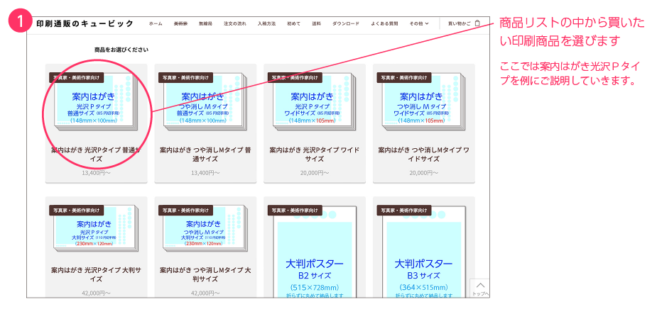 商品リストの中から買いたい印刷商品を選びます