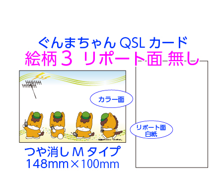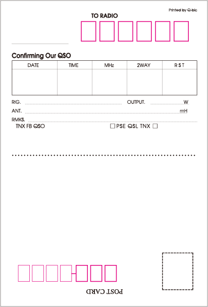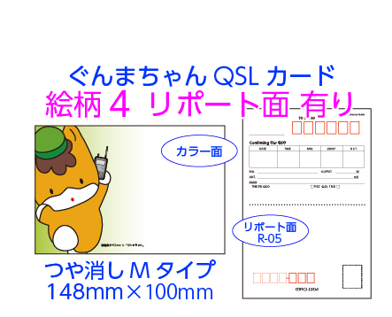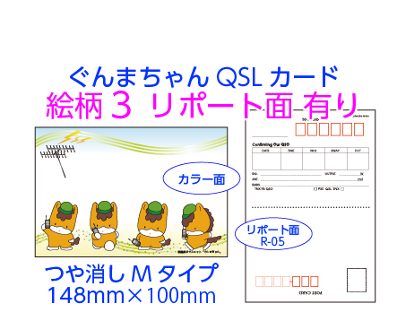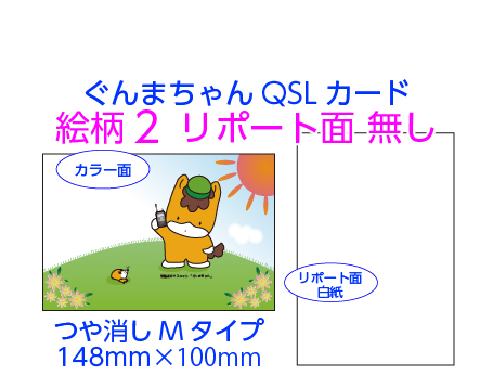あなたの写真を使って作るQSLカード。リポート面を複数用意。用紙は光沢Pタイプとつや消しマットMタイプの2種類から選べます。版制作から校正、印刷までのセット料金です。版データが出来上がりましたら、印刷前にメールでご確認いただけるから安心です。修正のご希望にもお応えしております。当ショップでは版制作から校正、印刷までのセット料金です。(税込)(納品送料は別途)。商品は宅配でお届けします。