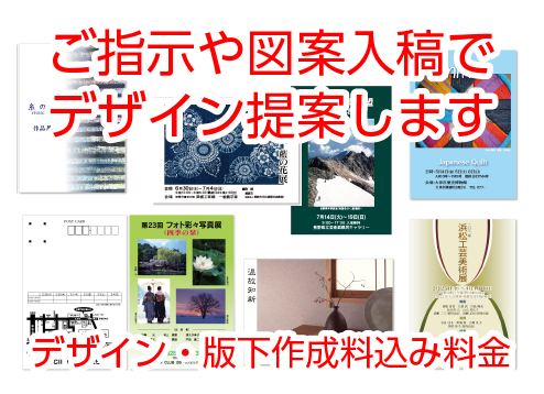 個展の告知に最適な案内はがき印刷。作品写真を使って作る、あなたの展覧会に招待するはがきを作成。当店デザイナーがあなたの希望に沿ってデザイン案を作成。印刷前に確認できるから安心です。写真面(カラー面)は艶のある鏡面仕上げ用紙・宛名面は上質仕上げだから宛名も書きやすくなっています。はがきのサイズは官製はがきと同サイズの100mm×148mm。すぐ下の「選択」の下をクリック(タップ)して枚数などを選ぶと枚数ごとの価格が表示されます。
